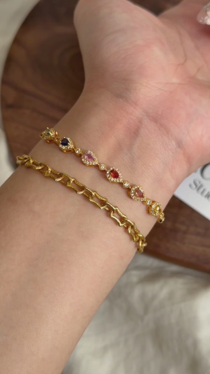 ✨ 老燒彩藍寶純銀鍍金手鏈💓